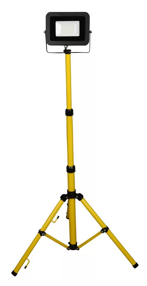 LED reflektor, teleszkópos állvánnyal, 30W, 6500K (CW), IP44, 2400lm, 25000h, fekete/sárga állvány